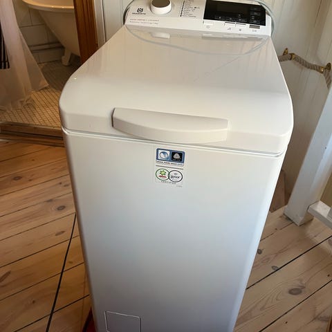 Toppmatad tvättmaskin som är otroligt sparsamt använd.