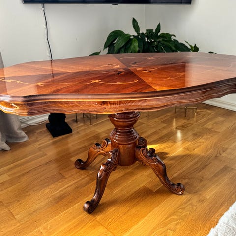 Säljer ett stort och unikt soffbord köpt direkt från en Argentina antik butik. Handpräglat läder med kraftfulla aztek/maya-inspirerade figurer och geometrisk ram. Mörkbrun patinerad träram och snidade ben. Gediget hantverk som blir en riktig blickfång i vardagsrummet.