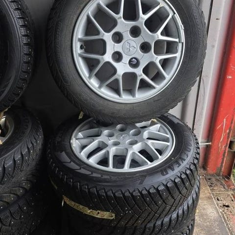 Fyra sommardäck på fälg i bra skick, mönsterdjup 5 mm. De har suttit på en Saab 9-3 2003.