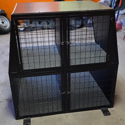 90cm bred 60 hög 80 djup på botten, mellanvägg går att ta bort, två dörrar.