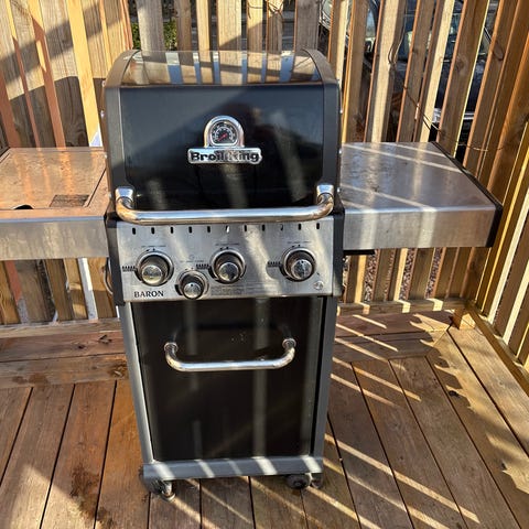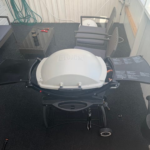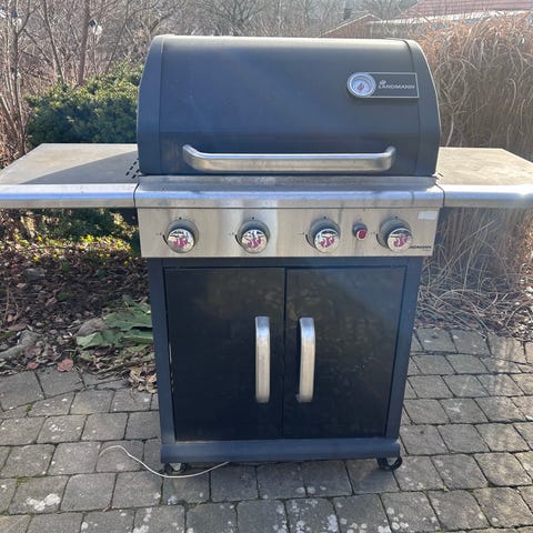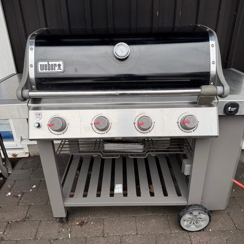 Weber Summit Platinum gasolgrill i syrafast rostfritt stål. Grillen har flera brännare med individuella reglage på frontpanelen samt inbyggd termometer i locket för temperaturkontroll. Utrustad med sidobrännare och arbetsytor på båda sidor om grillen. Grillgaller och värmehylla inuti locket ger möjlighet till både direkt och indirekt grillning. Gasolanslutning med slang syns på sidan av grillen. Premium överdrag ( kostade ca 2000kr) Gastub medföljer. Konstruktionen som är uppbyggd på fyra hjul är huvudsakligen i syrafast rostfritt stål med förvaringsskåp under grilldelen. Idag görs inte grillar av syrafast rostfritt stål längre då kostnaderna blir för höga, ett tillfälle att förvärva en unik Vintage Weber produkt av yttersta kvalitet