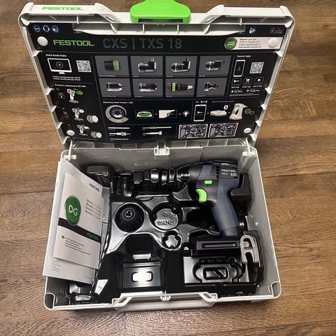 Festool CXS 18V borrskruvdragare. Kompakt batteridriven borrskruvdragare i 18V-klassen. Satsen inkluderar maskin, Festool-laddare och flera utbytbara chuckar/försättare för olika skruv- och borrapplikationer. Levereras i systainer-förvaringslåda för skydd och enkel transport.