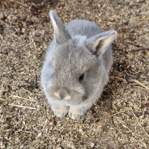 Två söta kaninungar födda 5 feb är snart redo att flytta från sin mamma den bruna är en lite tjej och den gråa är en lite kille är hanterade