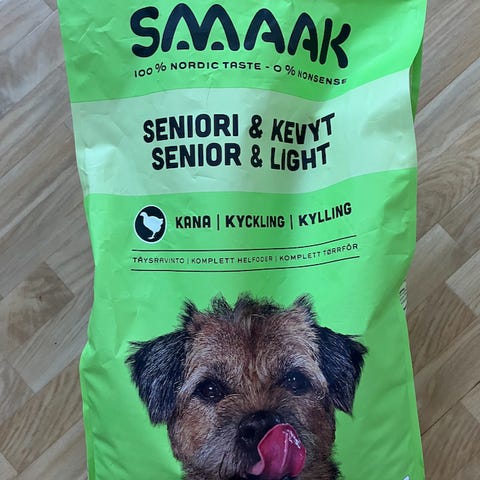 Smaak hundfoder med nöt och lax, 1 kg. Färskt helfoder för vuxen hund. Innehåller råa ingredienser anpassade för vuxna hundars näringsbehov. Förpackningen anger utfodringsrekommendationer i gram per dag baserat på hundens vikt. Lämpligt som komplett daglig kost för vuxna hundar.