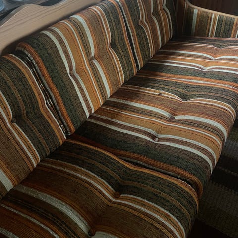 Renoveringsobjekt. Känns strukturellt väldigt stabil men klädselmässigt är den en total katastrof.