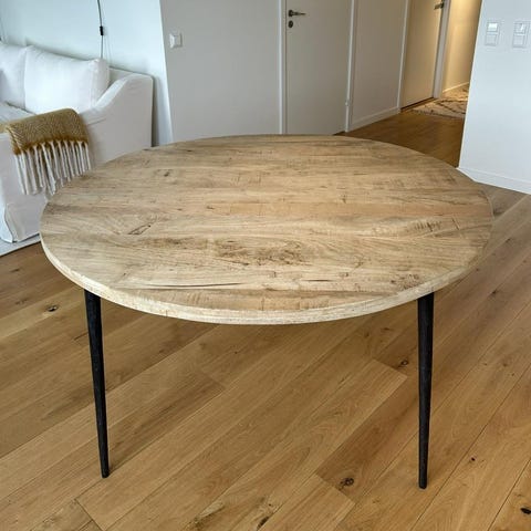 Club matbord från House Doctor. Ett runt bord med en rustik och robust design med bordsskiva av mangoträ och ben av järn. Skapa en jordnära känsla i ditt kök med detta matbord. Välj mellan svartbetsad eller naturfärgad bordsskiva.