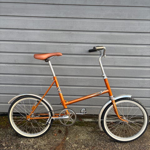 Biltemas Yosemite hopfällbara campingcykel som från början var elektrisk men då batteriet blev dåligt så har den funkat som en vanlig hoj.