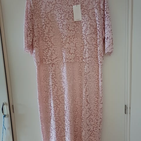 Bonprix Bodyflirt festklänning för dam i storlek 44. Klänningen är rosa och tillverkad i polyester. Modellen har spetsdetaljer upptill och på ärmarna samt rak kjoldel. Ärmarnas längd är cirka trekvart. Passar till fest och andra mer uppklädda tillfällen.
