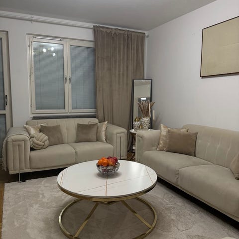 Säljer en exklusiv och lyxig soffgrupp i beige sammet från SE- möbler