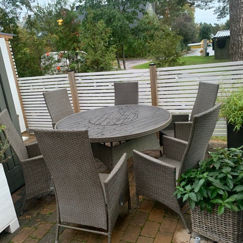 Matgrupp utomhus 150 diameter + 8 stolar.