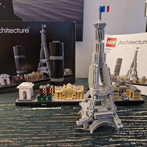 Lego Eiffel Tower byggsats 10307. Setet föreställer Eiffeltornet i Paris och består av 10 001 delar. Modellen är avsedd för vuxna byggare (18+). Innehåller detaljerad bas med omgivning samt sektioner som byggs upp stegvis enligt medföljande instruktioner. Passar som samlarobjekt eller utställningsmodell i hem eller kontor.