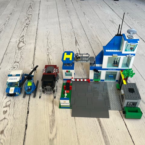 LEGO blandade set byggklossar. Flera olika teman syns på bilderna, bland annat LEGO City, LEGO Super Heroes och LEGO Creator. Seten innehåller fordon, byggnader, figurer och tillbehör. Passar för barn som gillar att bygga och leka med olika scenarier som polis, superhjältar och fantasivarelser. Instruktionshäften till flera av seten finns med på bilderna.