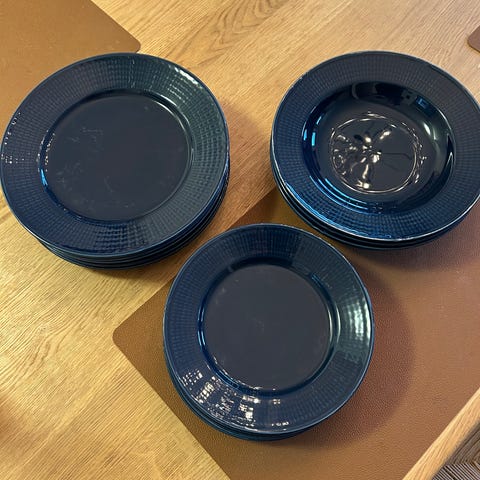 Säljer tallrikar ur serien Basic från Mateus i den fina färgen mörkblå. Tallrikarna är 32 cm i diameter och passar perfekt som uppläggningsfat eller stora middagstallrikar.