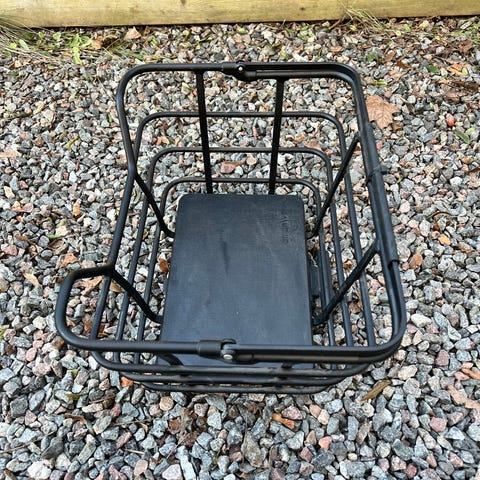 Front rack som jag haft på min Surly LHT. Mått 30x22cm, dvs mediumstorlek på pakethållaren. Passar cyklar med fästmöjlighet vid framgaffel.