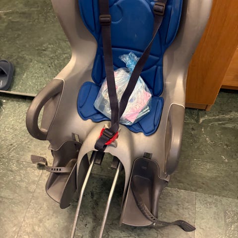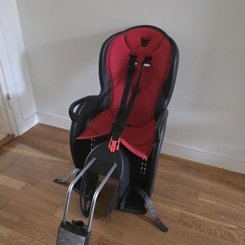 Cykelbarnstol av märket Cycletrack. Välkomna använd men fullt fungerande och hel.