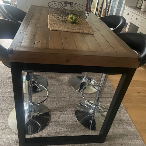 Barbord med 4 stolar, allt ser bra ut och god skick. Metallunderrede och mycket bekväma stolar.