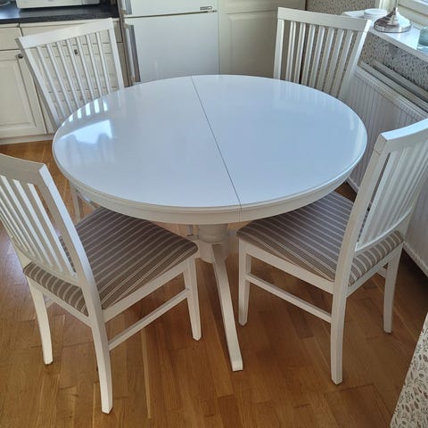Runt matbord och stolar. Bra skick!