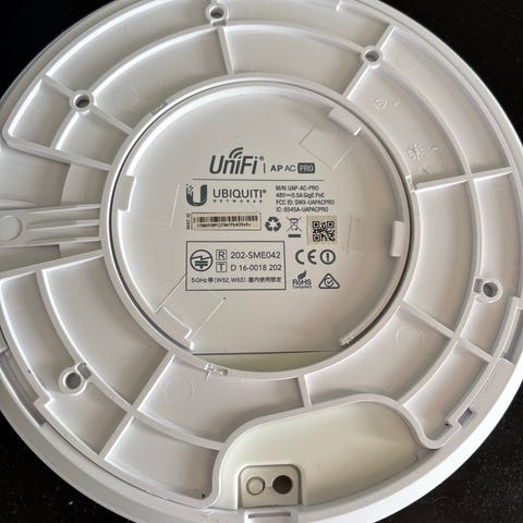 Ubiquiti Unifi AC Pro router i vit färg. Enheten är avsedd för trådlösa nätverk och monteras vanligtvis i tak eller på vägg. Passar för hem eller kontor där stabil och utbyggbar nätverkslösning önskas. Levereras i originalförpackning enligt bilderna.