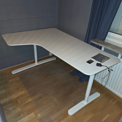 Skrivbordet (elektriskt höj- och sänkbart) är i mycket gott skick, endast ett par år gammalt och säljes komplett med kvitto. Garantin gäller fram till oktober 2030.
