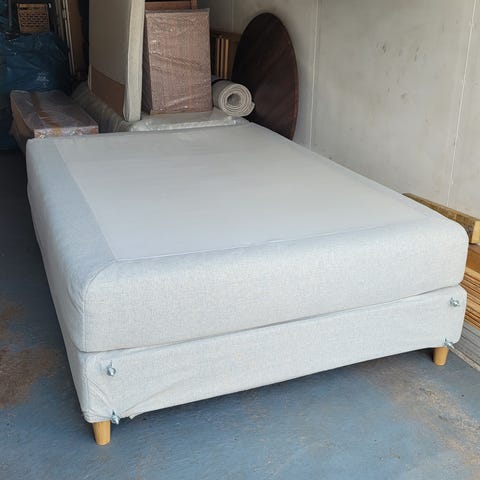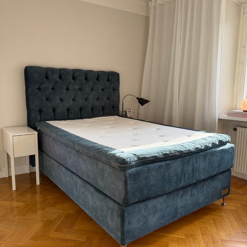 IKEA kontinentalsäng beige mörkgrå med bäddmadrass