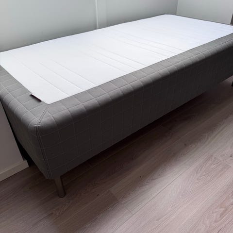 Säljer en IKEA sängram 160×200 i beige med madrass.