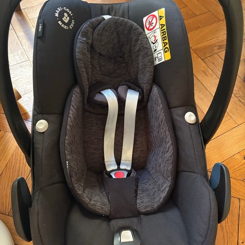 Cybex babyskydd bilbarnstol för barn i storlek 0–13 kg. Modellen är bakåtvänd och har bärhandtag för enkel förflyttning mellan bil och exempelvis barnvagnschassi, om kompatibelt. Sätet har intern 3-punktssele med vadderade axelremmar och justerbart bärhandtag. Klädseln är mjukt vadderad och färgen är svart. Undersidan visar fästen och märkning med godkännandestandard för bilbarnstolar. Babyskyddet är avsett för montering i bil enligt tillverkarens anvisningar och kan användas från nyfödd upp till cirka 13 kg, beroende på barnets längd och vikt.