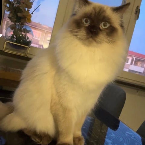 Vi söker ett tryggt, kärleksfullt och permanent hem, gärna hos någon som har erfarenhet av katt eller rasen. Det viktigaste för oss är att hon får ett lugnt och stabilt liv där hon får mycket kärlek. Hon hade älskat att ha en balkong att kunna gå ut på och få ligga i solen och njuta.