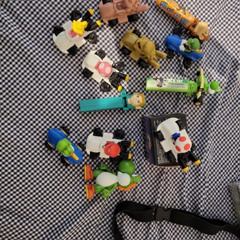 En mix av riktigt gamla och nya Brio prylar med mycket räls. Zooma in för att se.