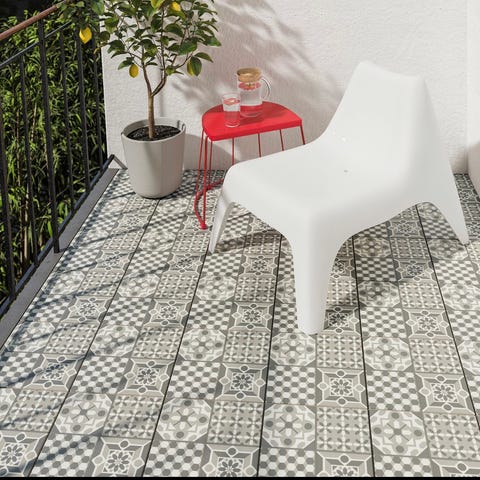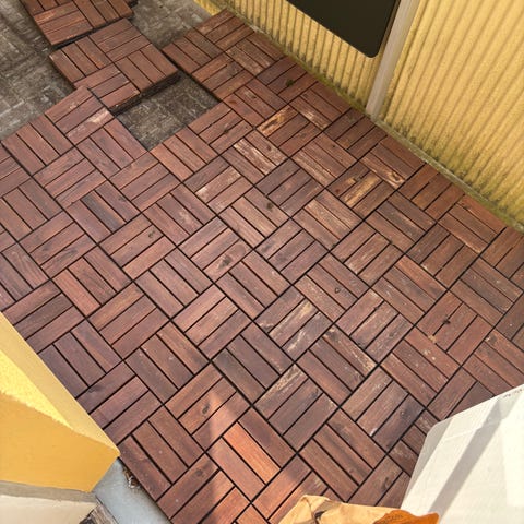 Trallplattor i trä i brun nyans för uteplats eller balkong.
