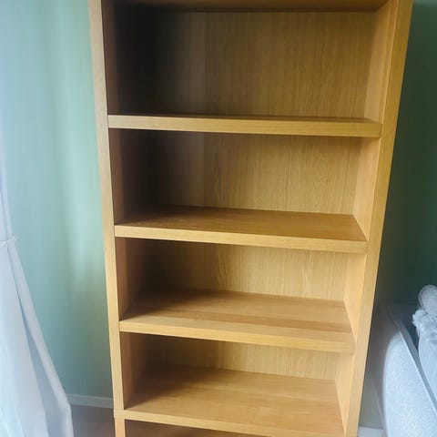 Bokhylla från IKEA. Använd skick, men funkar bra i tex ett förråd :)