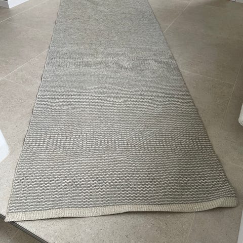 matta i beige färg. Rektangulär modell med mjuk, något längre lugg. Passar exempelvis i hall, sovrum eller vardagsrum. Exakta mått och material framgår inte av uppgifterna och kan mätas vid behov.