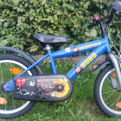 Barncykel med 12" hjul i blå och silver färg med pedaler. För pedal cykel för mindre barn. Det fina med denna är att den går att bromsa, vilket balans cyklar inte normalt kan.