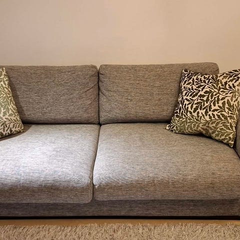 Designsoffa i fantastiskt kvalitet från Bolia. Några år på nacken, och därmed lite fläckar och en liten lagning, men den bör kunna bli i mkt fint skick igen efter en möbeltvätt (kostar ca 1000 kr).