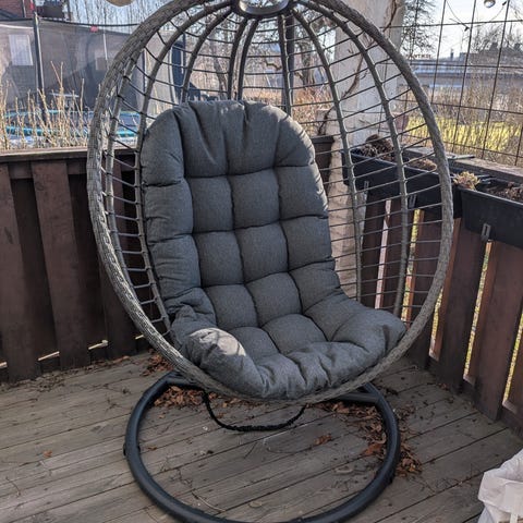 Man kan hänga den som på bilderna eller i två metall öglor som en gunga.