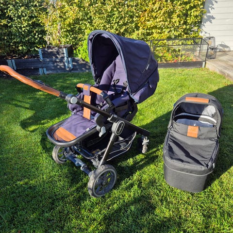 Britax sittvagn i svart tyg. Smidig och liten, men allt man behöver, varukorg under sitsen, justerbart ryggstöd och sufflett. Utrustad med bygel framtill. Passar för ett barn att sitta eller vila i. Har blivit skavd i handtaget runt märket. Annars i fint skick!