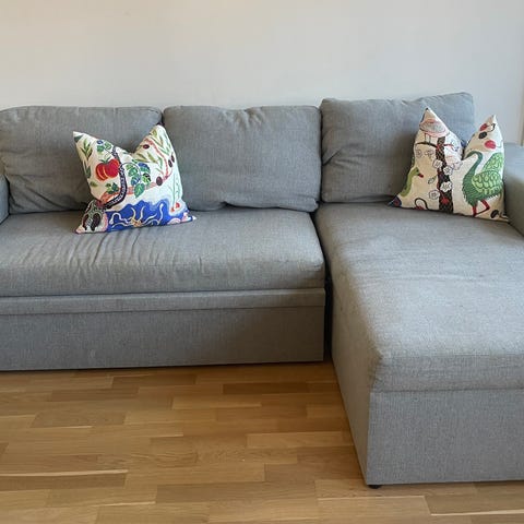 Söt bäddsoffa från IKEA. Skön soffa som fyller sin funktion. Men att sova i den passar bättre för barn än vuxna, den är rätt hård. Lägger man en extra madrass funkar den dock bra.