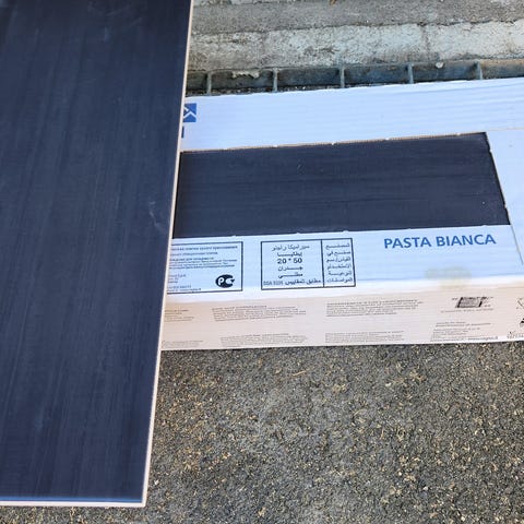 Svart marmormönstrad kakelplatta i storlek 300x600 mm. Plattan har blank yta med vita ådringar som efterliknar marmor. Lämplig för användning på vägg eller golv i exempelvis badrum, kök eller hall, beroende på tillverkarens rekommendationer. Storleken 300x600 mm ger ett avlångt format som kan läggas både stående och liggande för olika mönsterlösningar. 12 packet innnehåller 8 st plattor i varje packet. Klinkers golvet är köpt på bygghemma.