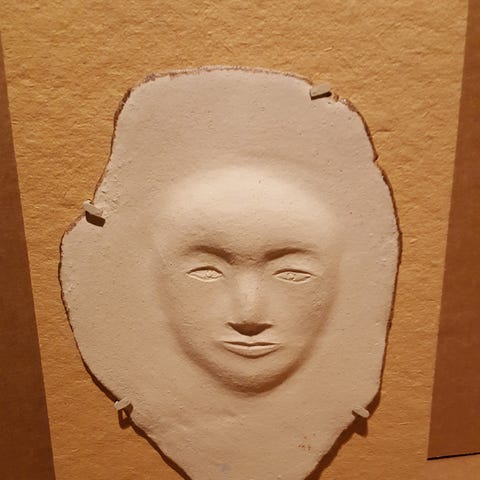Skulptur av Marianne Hall föreställande ett barnhuvud.