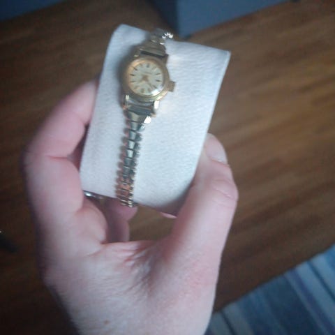 Omega Genève Dynamic – Damklocka – Vintage 70-tal Vacker och elegant Omega Genève Dynamic damklocka från 1970-talet. Klockan fungerar som den ska och framstår i utmärkt skick. Klassisk guldfärgad Dynamic-boett med karakteristisk oval form. Tvåfärgad urtavla med fina detaljer och datumvisning ger klockan ett exklusivt och tidlöst uttryck. Monterad på ett matchande armband, vilket kompletterar den ikoniska 70-talsdesignen. En genuin schweizisk kvalitetsklocka med massor av stil och personlighet – perfekt för både samlare och de som vill ha något unikt. Lägg ett seriöst bud 😊