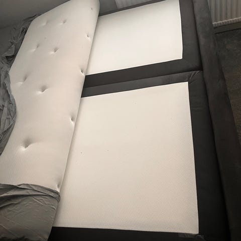Sängen är i fint skick och komplett med alla madrasser. Sänggavel och sängbord ingår inte.
