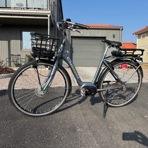 5 lägen på elen, beroende på hur fort man vill att det går. Fram och bakbelysning finns även på cykeln. Motorn sitter i framhjulet för extra bra drift. Cykeln är några år gammal men funkar bra för sin ålder. Nypris 19.900 kr!