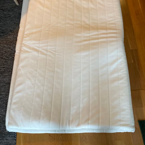 En bäddmadrass som har varit i en gästsäng. Den är ca 5 cm tjock och har ett tvättbart överdrag. Fri transport inom Stockholm!