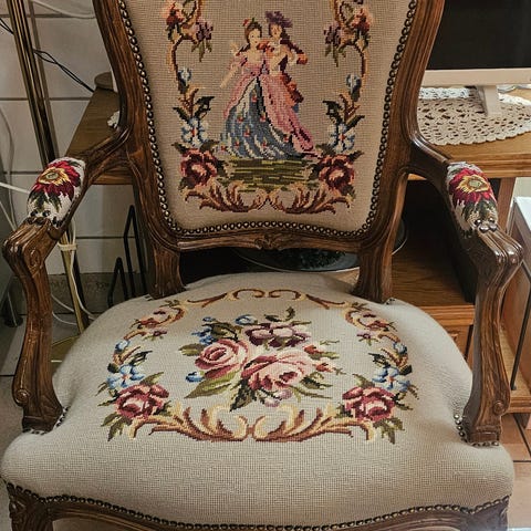 1 par stolar Rokokostill broderad tyg