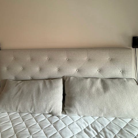 (160 cm passar sänggavel som är max 165 cm bred, 10 cm djup och 145 cm hög. Överdraget är 175x150 cm.)