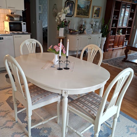 Stort stabilt matbord märke Country original med iläggsskiva.
