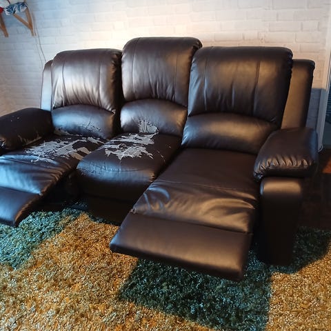 Soffa i svart läder + 2 fåtöljer – 1500 kr