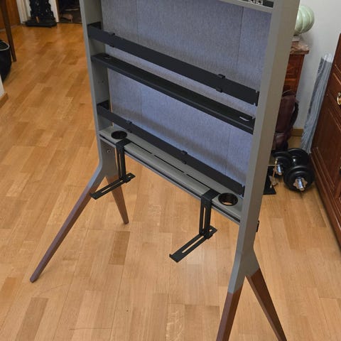 Stället har en stilren design med hylla undertill och hjul, vilket gör det enkelt att flytta. Passar perfekt i vardagsrum, kontor eller konferensrum.