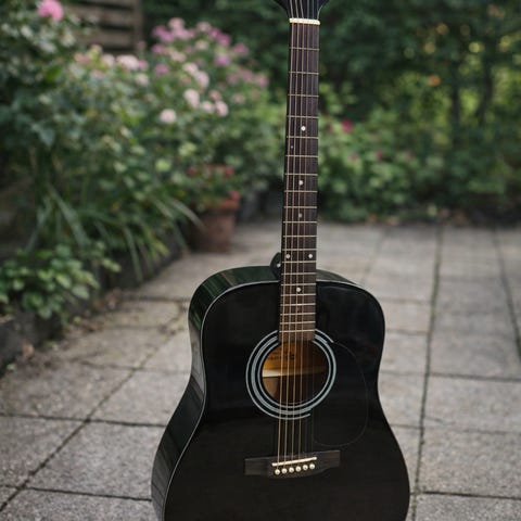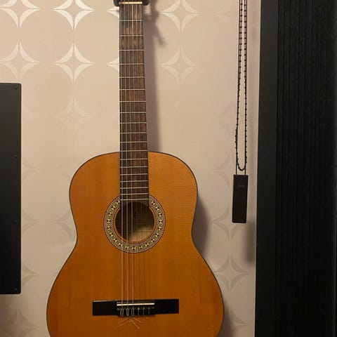 Riktigt fin akustisk gitarr. Knappt ett år gammal och inte spelat många minuter på den! (Plast på pickguard är kvar)