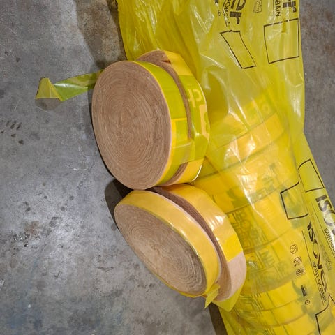 Glasullsremsor för drevning runt fönster, dörrar och mellan byggelement.