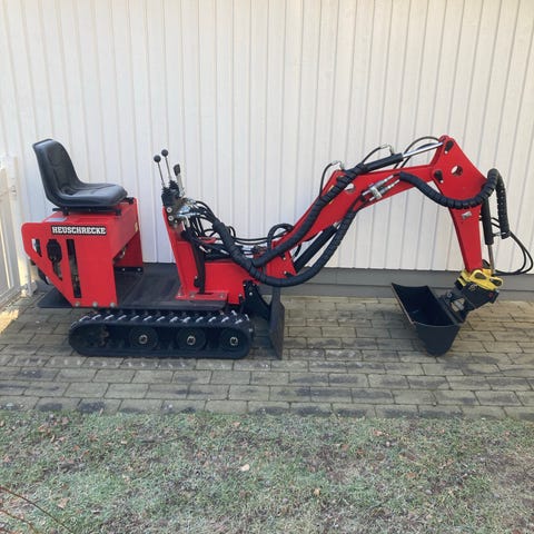 Smidig grävare som gör extremt lite märken efter sig. Bra grävförmåga i förhållande till sin vikt. Bara att koppla på efter bilen o köra hem till er tomt. Registrerad som släpvagn och får köras i 80km/h. Total vikt på 750kg så får dras efter nästan alla bilar på B-körkort.